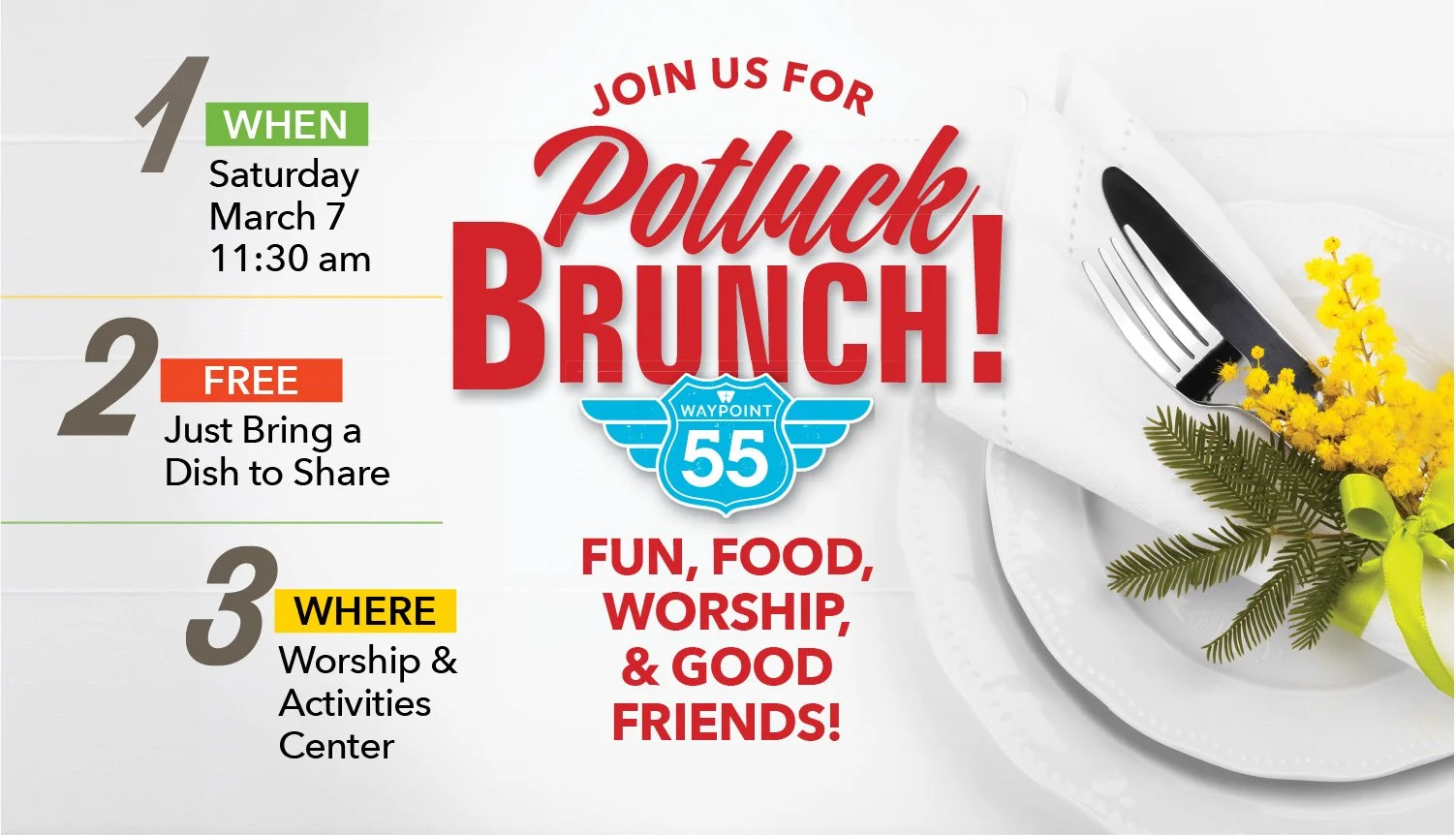 Saturday, March 7 at 12 pm. Spring is just around the corner, let's celebrate! Bring your favorite dish to share. For the over 55 crowd. Sign up today so we'll know how many are coming.