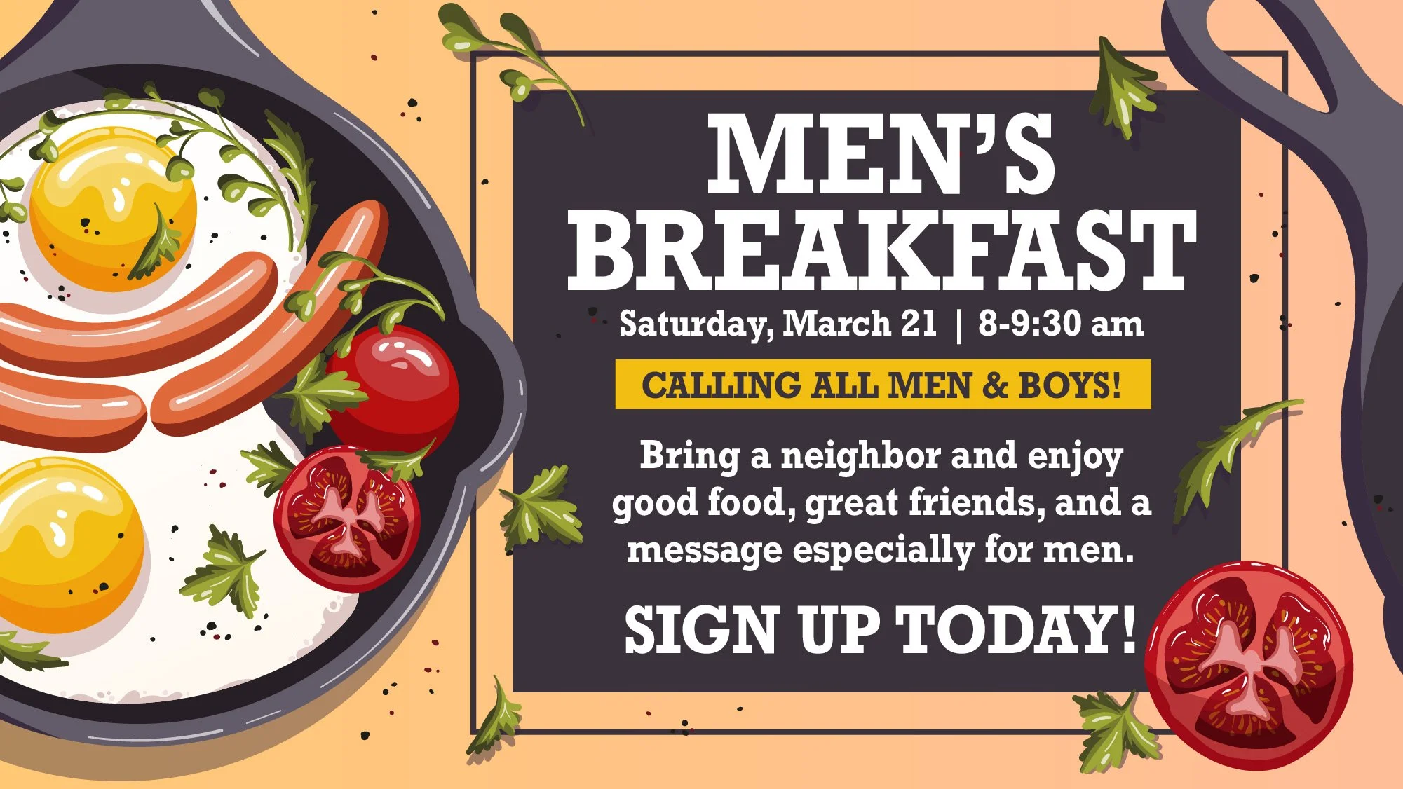 Saturday, March 21 from 8-9:30 am. We're serving up breakfast, and so much more, at Waypoint. Men and accompanied boys are invited to enjoy a delicious breakfast, meaningful message, and an opportunity to kick back and enjoy time with other guys. Sign up today so we'll have plenty of food.
